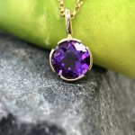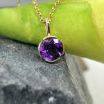 14ky 8mm 1.64ct Round Amethyst Pendant. Chain sold separately